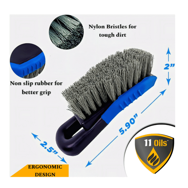 The ergonomically designed handle, featuring a comfortable blue grip section, ensures you can maintain control while scrubbing away stubborn dirt dust from carpet and upholstery. The robust construction makes this brush ideal for both regular maintenance and intensive cleaning sessions. The compact size makes it easy to store in your garage or boot, ready whenever you need to restore the upholestry.
