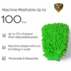 Microfiber wash mitt features double-sided cleaning surface with thick, plush chenille fingers for maximum dirt absorption and cleaning efficiency