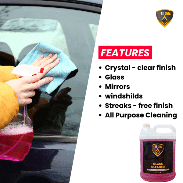 Achieve crystal-clear, smudge-free glass surfaces with this professional-grade glass cleaning solution. The 11oils Glass Cleaner comes in a generous 5-litre container, perfect for both commercial and residential use. This powerful formula effectively removes fingerprints, dust, dirt, and grime from windows, mirrors, glass tables, and other glass surfaces.