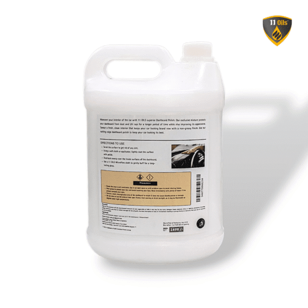 Restore and protect your vehicle’s dashboard with this premium dashboard polish. The 5L container provides ample supply for multiple applications, ensuring long-lasting care for your car’s interior surfaces. This specially formulated polish helps prevent fading and cracking while leaving a clean, professional finish that enhances your dashboard’s appearance. Perfect for automotive professionals and car enthusiasts alike, this polish is easy to apply and helps maintain the original look of your vehicle’s interior components.